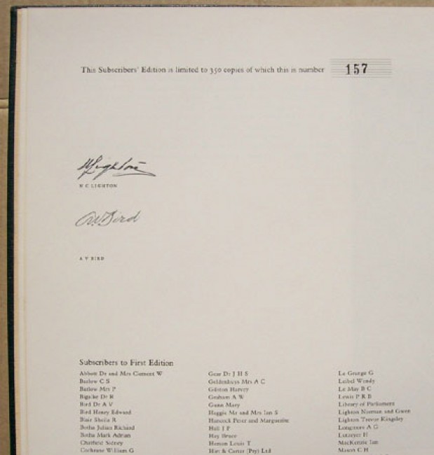 Please be aware of postage costs, this book is large. Copy number 157 of the Subscribers\' edition limited to 350 copies in total. Signed by both Bird and Lighton. Original dark blue simulated leather boards with gilt titling on the spine and the upper board. Decorated end papers. 12 prelims, colour frontis plate (which the standard edition lacks) and 51 plates. Please note that the numbering of the plates is correct. The text explains why there is no number 1, 31, 32 and 40.