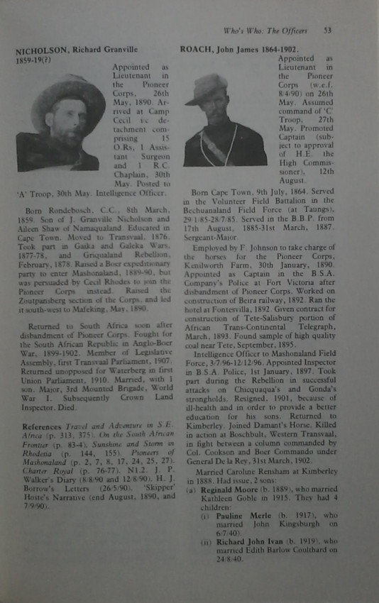 The Pioneer Corps by Robert Cary, published by Galaxie Press , Salisbury Rhodesia , 1975.