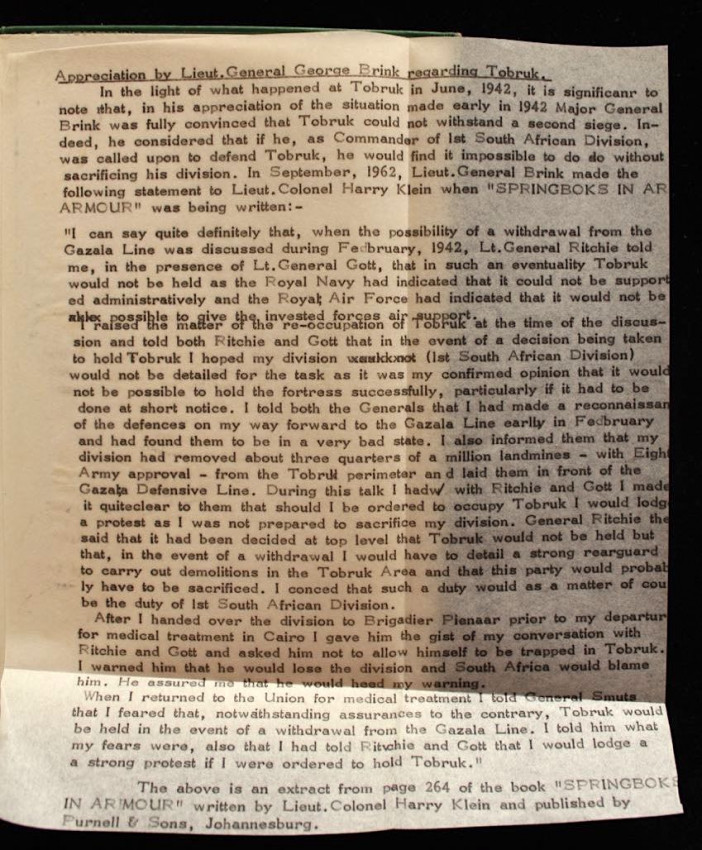 The Brigade contributed magnificently in the early ups and downs of the gruelling Western Desert Campaign until it became one of the victims of the TOBRUK disaster." - from the Foreword