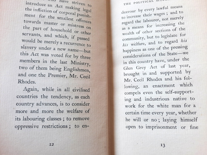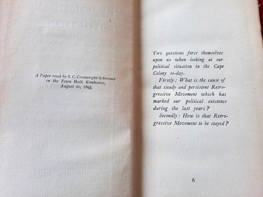"Two questions force themselves upon us when looking at our political situation in the Cape Colony to-day.