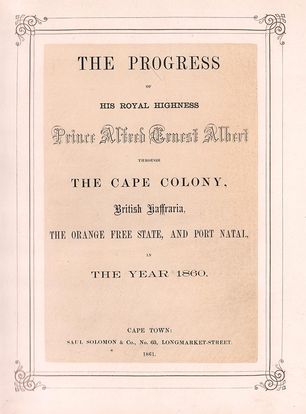 The first South African publication to carry photographs was the Cape Monthly Magazine of January 1859 (York). This book on the Prince's tour was the first to be illustrated with photographs.
