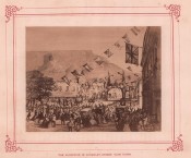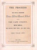 A remarkable production and undoubtedly Saul Solomon's finest. 6 photographs are by Kirkman of Bowler paintings, 4 are of paintings by Baines, the remaining six are original views: Graham's Town (by Green); Reception near Queen's Town; Interview with the Tambookies; Moshesh and His Councellors; Prince with Wildebeeste; Prince's Travelling Equipage. These last 5 are by York. Although Kirkman's name appears with that of York in the 'List of Illustrations' it would appear to be unjustified since, according to Bull (Majorie) and Denfield (Joseph) Secure the Shadow, Kirkman did not leave Cape Town.