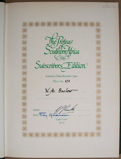 Copy number 171 of 300 copies signed by John Rourke and Fay Anderson. Included is a letter signed by John Rourke to W.A. Barlow that was sent to all sponsors and subscribers thanking them for their support. W.A Barlow appears on the list of Subscribers.