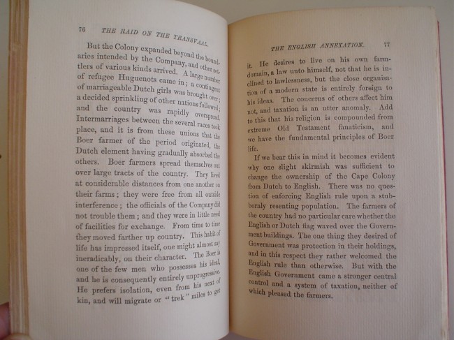 306 pages, frontispiece of Dr. L.S. Jameson, 1896 first edition by Dean & Son, Limited. A clean copy tightly bound. Ex-libris stamp in front. Spine is sun-faded and very brittle and would probably need some repair.