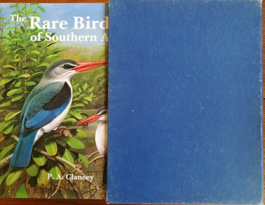 Blue cloth-boards inside a laminated colour-illustrated dustjacket inside a blue card slipcase.
