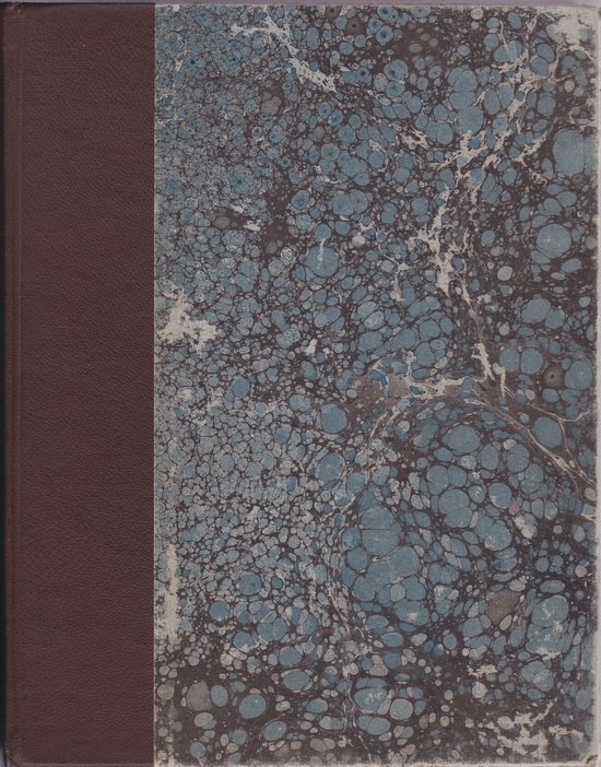 Blue marbled paper-covered boards. Quarter brown rexine with gilt titles on spine. The only signs of wear seem to be some bumping of the outer corners.