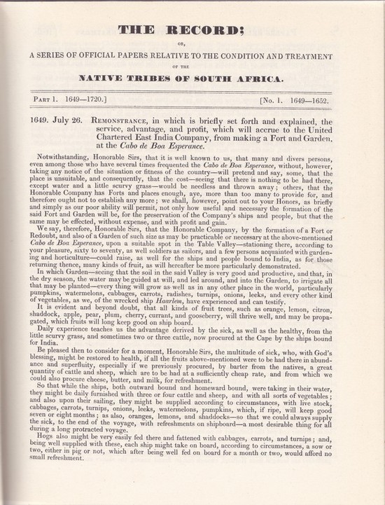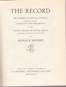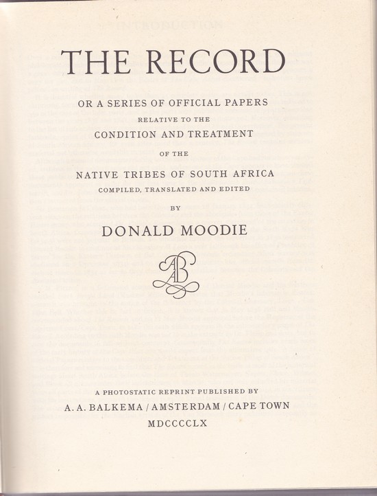 The introduction by Anna Smith is in itself an interesting historical statement. Moodie collected, translated and prepared for publication an enormous number of government documents relating to the "condition and treatment of the native tribes of South Africa". These documents date from 1649 to about 1840. His translation of early Dutch documents have been praised for their accuracy and expression. In many cases the original government material no longer exists and The Record is the only source for historians researching the period. His honest and objective information sometimes produced negative reactions when misgovernment and corruption were thus exposed. Moodie was highly regarded as a man of honour and integrity.