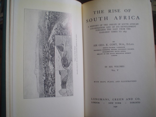 Vol.5. 1847-1853: xiv + 492pp. Contents: The reign of Sir Henry Pottinger; East versus West; The establishment of British Kaffraria; The Sovereignty Rebellion; The convict agitation; Representative government for Cape Colony; Outbreak of the Kaffir War of 1850-53; The Hottentot Rebellion; The Kaffir War continued; Further trouble in the Orange River Sovereignty; The war brought to an end vol.6 1854-1857.