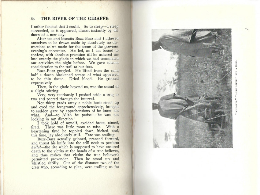 The author's hunting trips along a tributary of the White Nile for buffalo, roan, buck, etc