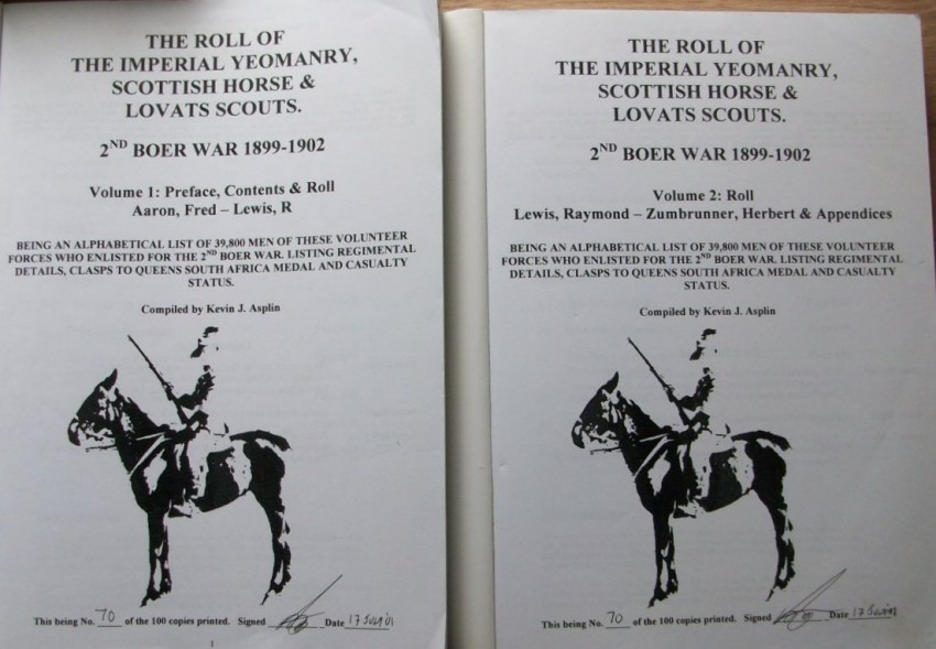 The Roll of The Imperial Yeomanry, Scottish Horse & Lovats Scouts. 2nd Boer War 1899-1902. Being an alphabetical list of 39,800 men of these volunteer forces who enlisted for the 2nd Boer War.