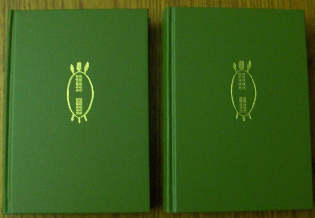 Leaf Green boards with attractive Zulu Shield/Assegai vignette to front boards and gilt lettering to spine.