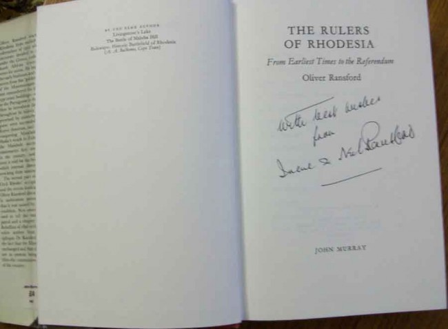 The Rulers of Rhodesia-From Earliest Times to the Referendum.Inscribed and SIGNED to title page.
