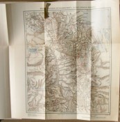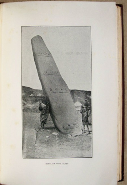 Original maroon cloth boards with gilt titling on the spine and a gilt decorative device on the upper board. Black end papers. xv prelims, 309 pages, 9 black and white plates, some fold out and 65 other black and white illustrations, folding coloured map at the rear followed by 32 numbered pages of the publisher\'s catalogue.