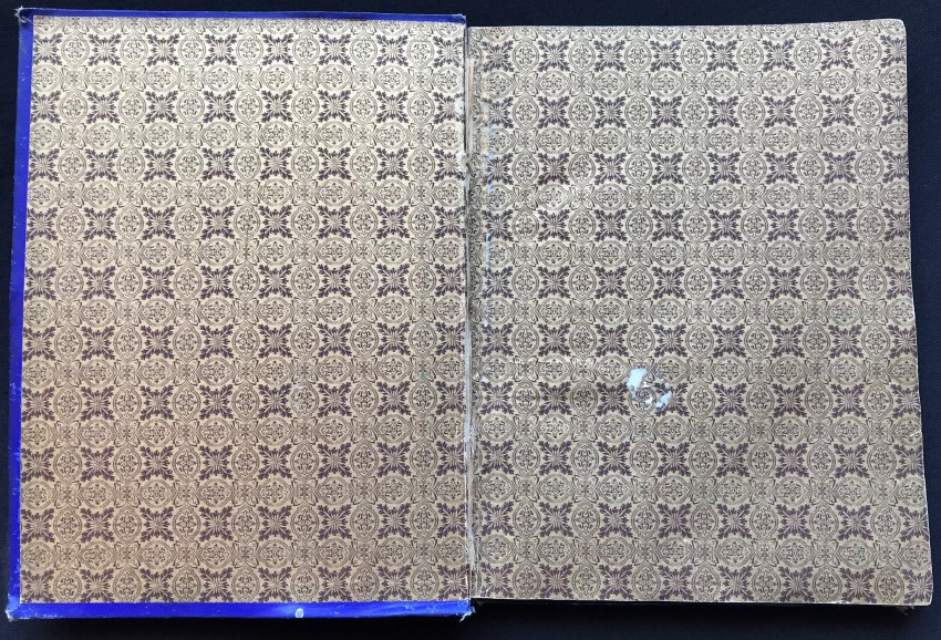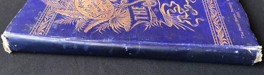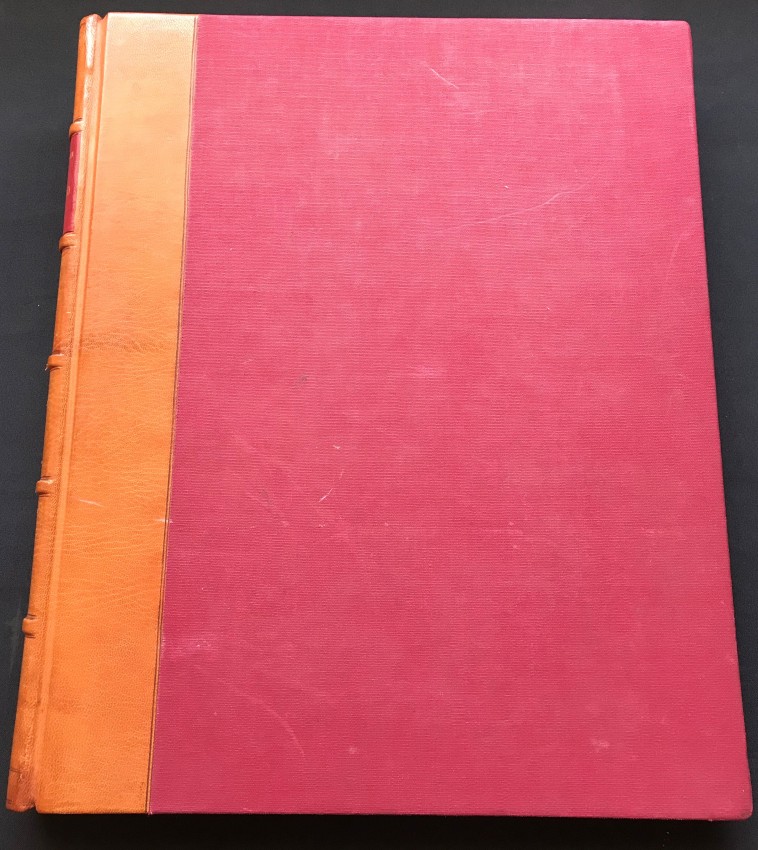 Decorative gilt design on the front board only, head/heel/corners and edges are a bumped and rubbed, some marks on the front/back boards, also has a small dent on the bottom/front board.
