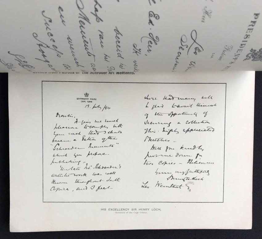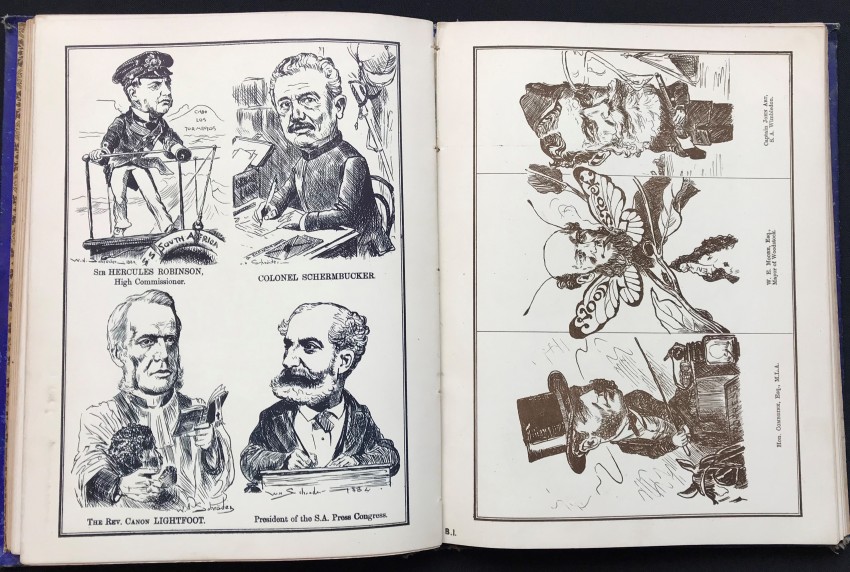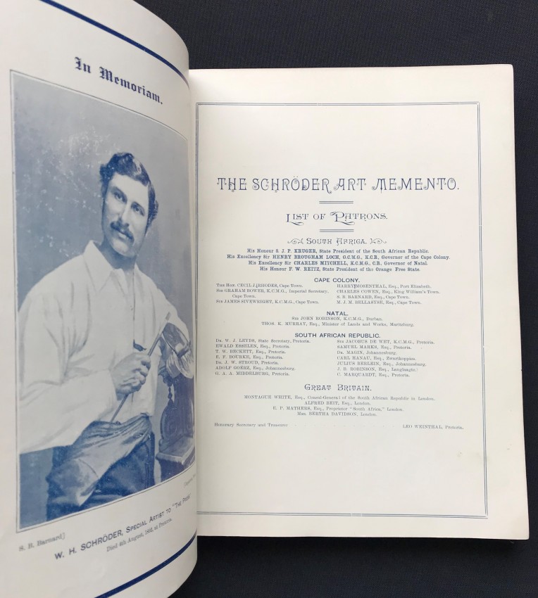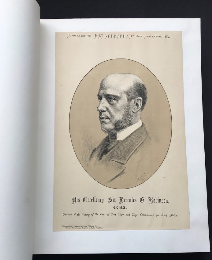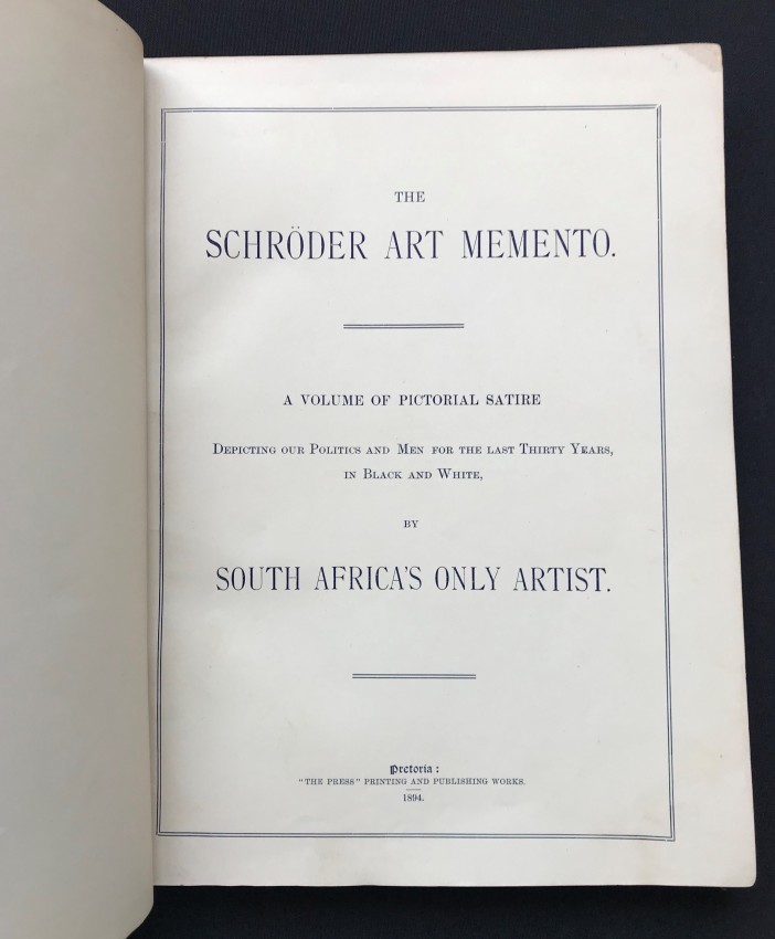 190 sketches and portraits: the collected works of this South African political artist/cartoonist W. H. Schröder, includes a fine portrait of Kruger & other South African celebrities 1869-92 & a few facsimile letters (Kruger, Rhodes, Leyds), 2 portraits of the artist & a memoir by Charles Cowen, Mendelssohn II.