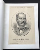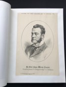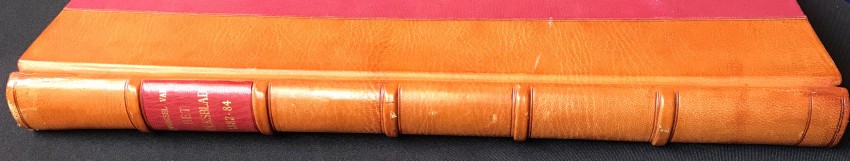 Large Hardcover, bound in half brown leather and red cloth sides, Gilt titles to the spine only with 5 raised bands. Contains 76 Lithograph portraits by W. H. Schröder.