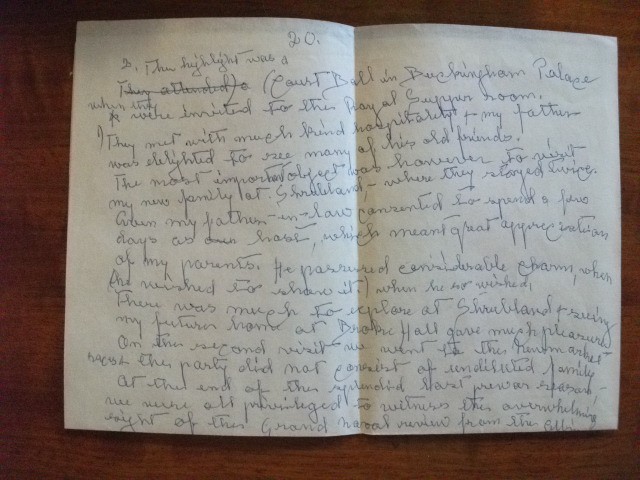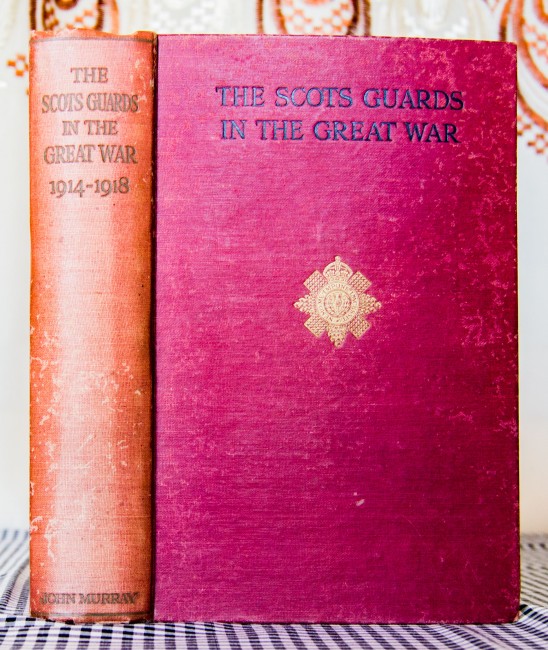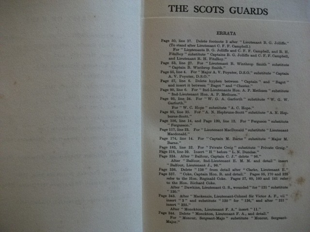 Copy of, and signed on the paste-down by, the 6th Baron (J V B) de Saumarez (b 1932), son of the 5th Baron, who as the Hon J St V B Saumarez (1889-1969) was a lieutenant (and later a captain) in the Scots Guards, wounded in the Great War and mentioned on four pages in this book. Loosely inserted is a handwritten page from a letter from the son referring to one of his parents' highlights, "when they were invited to the Royal Supper Room" for a "Court Ball in Buckingham Palace".