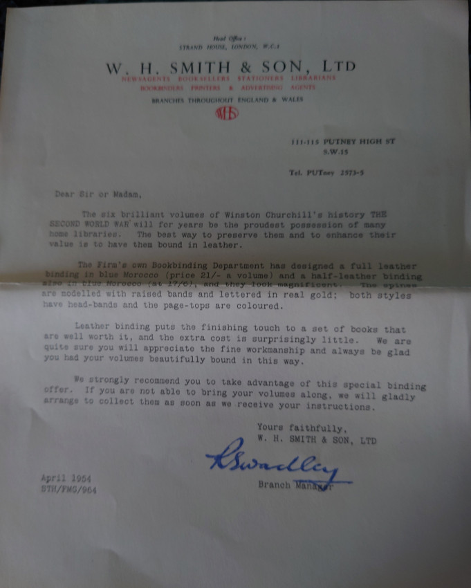 With a letter from W H Smith offering a book binding service to rebind the set in full morocco or half leather.