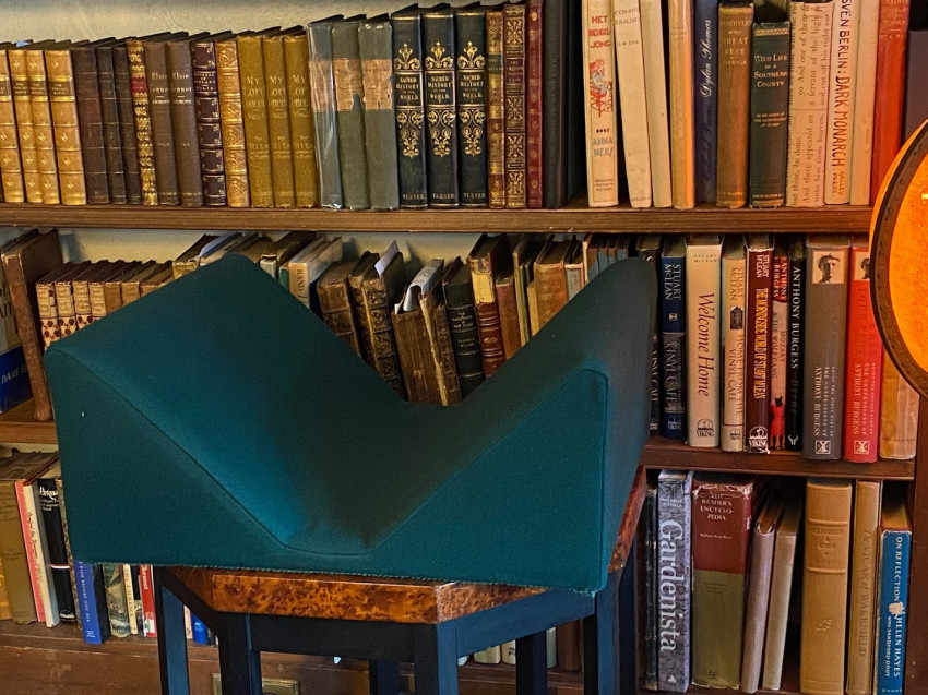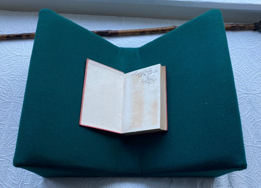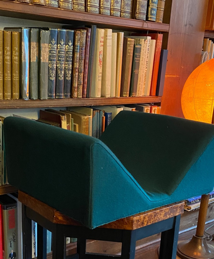 The Shadowrock Book Block. [Lakeville, Ct.: 2019]. Wood construction, suitably padded, upholstered in woven snooker-table woven green baize (18 ½ x 8 ½ x 16inches; 47 x 217 x 407mm).