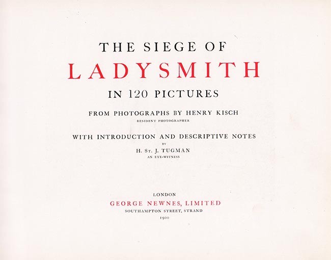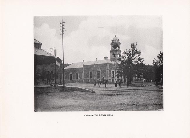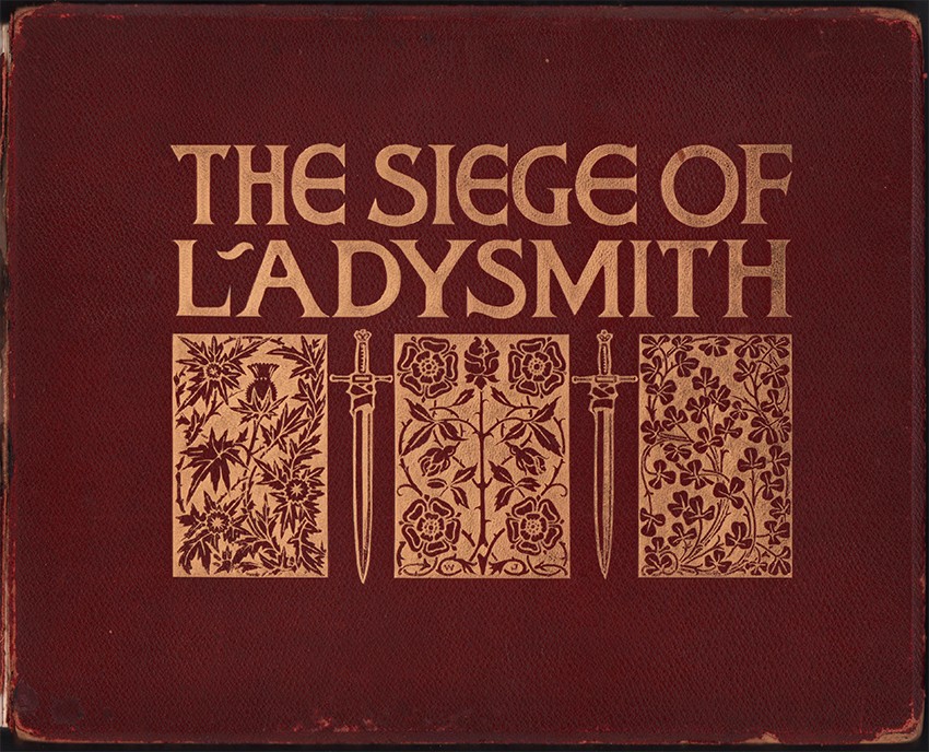 xxiv + 117 pages of photographs, frontispiece of the Ladysmith Town Hall with the damaged clock tower, full maroon leather elaborately titled and decorated in gilt on upper cover, spine and edges of the cover are frayed and very worn, all edges gilt, inner gilt dentelles, contents bright.