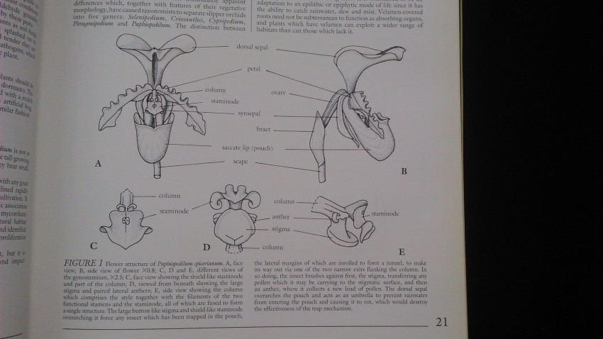 The text is done by Tessa Hedge which contains an introduction, bibliography and an index, Part 1, A review of the Slipper Orchids, Part 2, Representative species of Slipper orchids, Part 3, Man-made Hybrids.