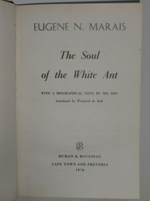 First published in 1937, the result of Marais' ten years' study of the habits of termites, or white ants. This edition: 139pp.
