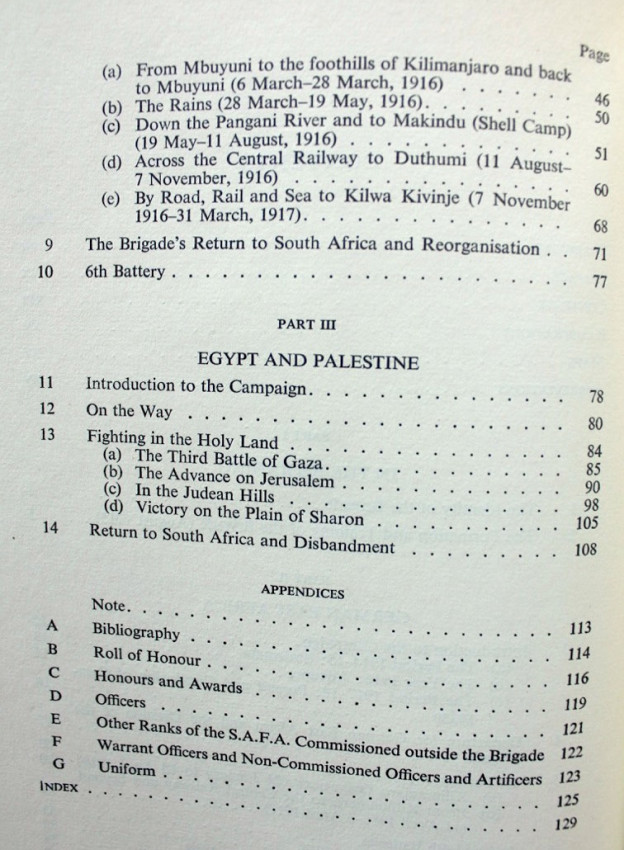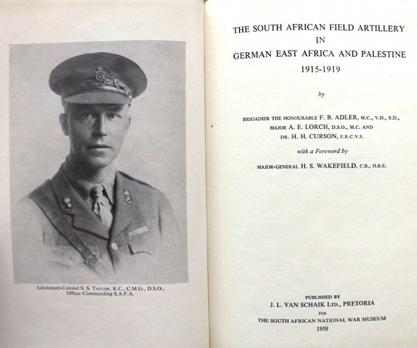 'In World War I several Units were formed of men who gladly volunteered to serve South Africa and the Commonwealth beyond the borders of the Union. They all played a noteworthy part on the fronts to which they were sent. The bare fact of their existence and composition are recorded in the cold vaults of the War Records Section but in only a few cases has an intimate history of any of those units appeared. Not least among such was the South African Field Artillery (S.A.F.A.) of which no full historical record has yet appeared.