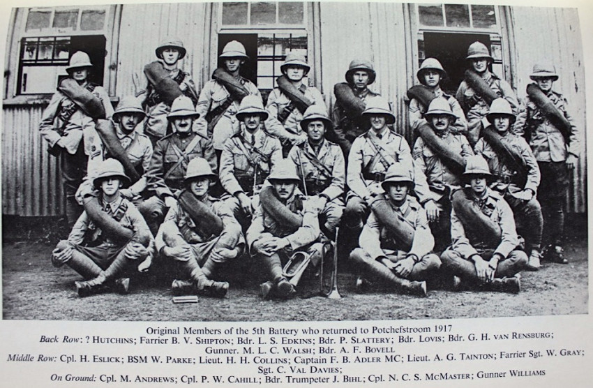 Within a month of the end of the German South West Africa Campaign volunteers were called for to form the S.A.F.A. for "service overseas". The response was excellent and within the short space of four and a half months it left for the front fully equipped and efficiently trained.