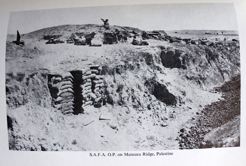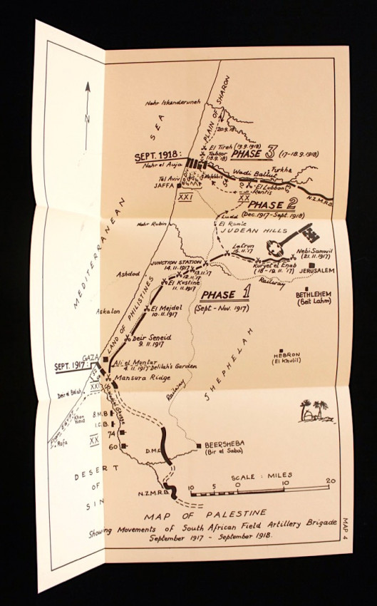 This history records the worthy and useful part the S.A.F.A. played, first in the fever infested tropics of East Africa and then across the plains of Palestine from Gaza to beyond the Judean Hills to ultimate victory on the Plain of Sharon.'