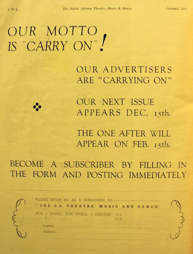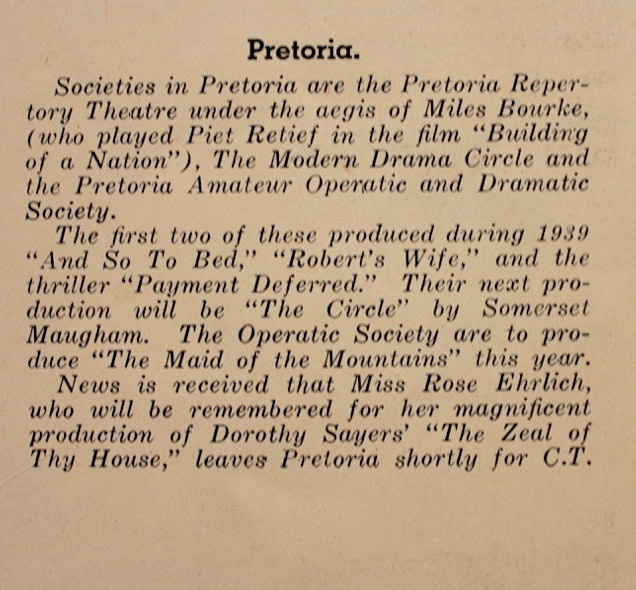 Contains everything one needs to know about the South African entertainment scene of the Thirties and features many portraits of theatre personalities of the day.