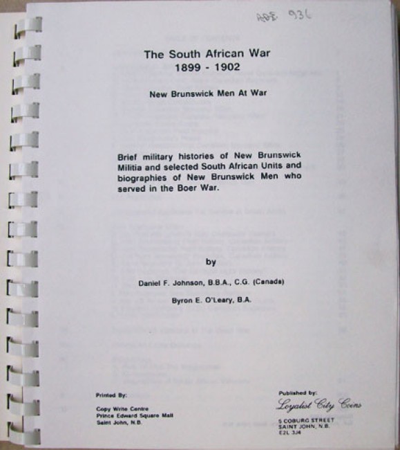 \"Brief military histories of New Brunswick Militia and selected South African Units and biographies of New Brunswick Men who served in the Boer War.\"