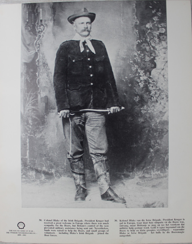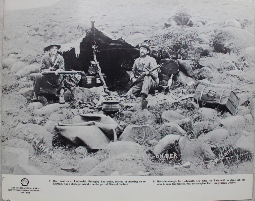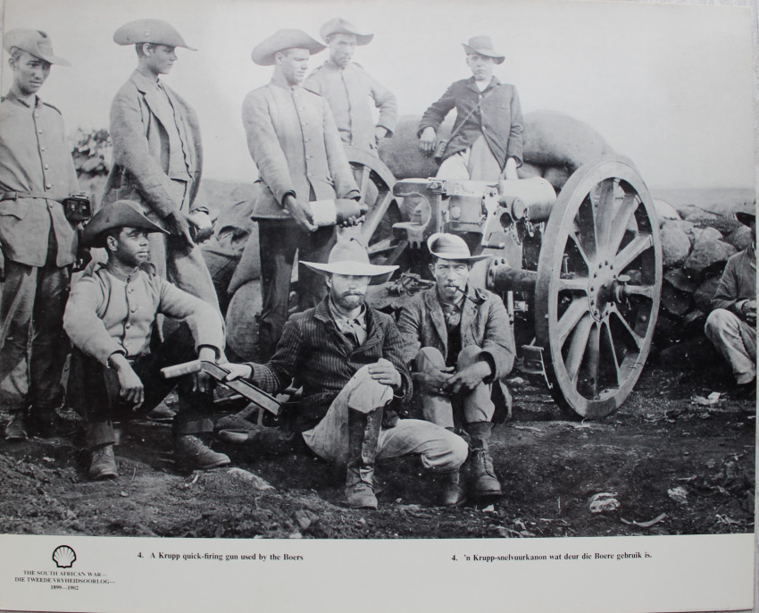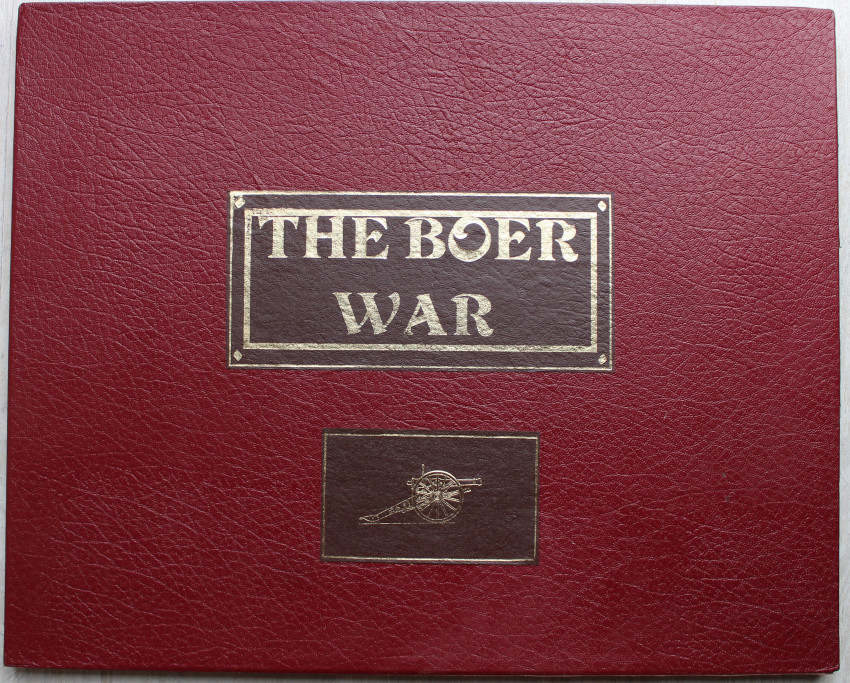 Set of 40 numbered glossy reprints of Boer War scenes and portraits, 393 x 318 mm, with one sheet of bilingual introduction and one sheet of picture credits. In good condition, in a new skivertex slipcase.