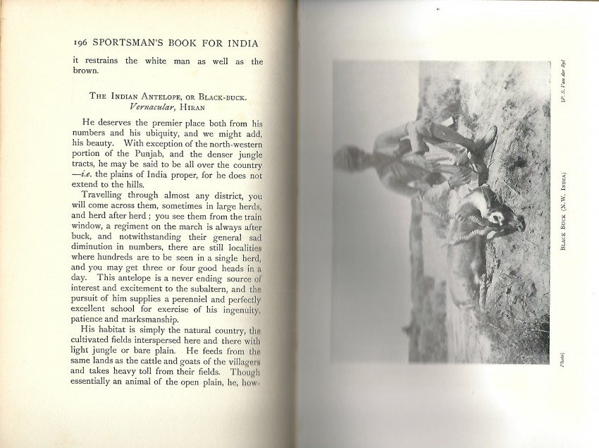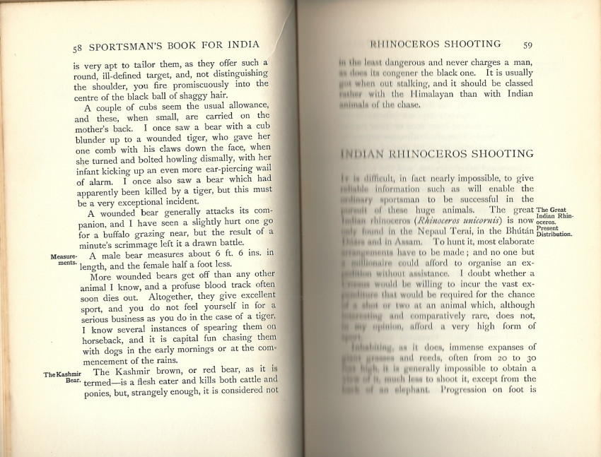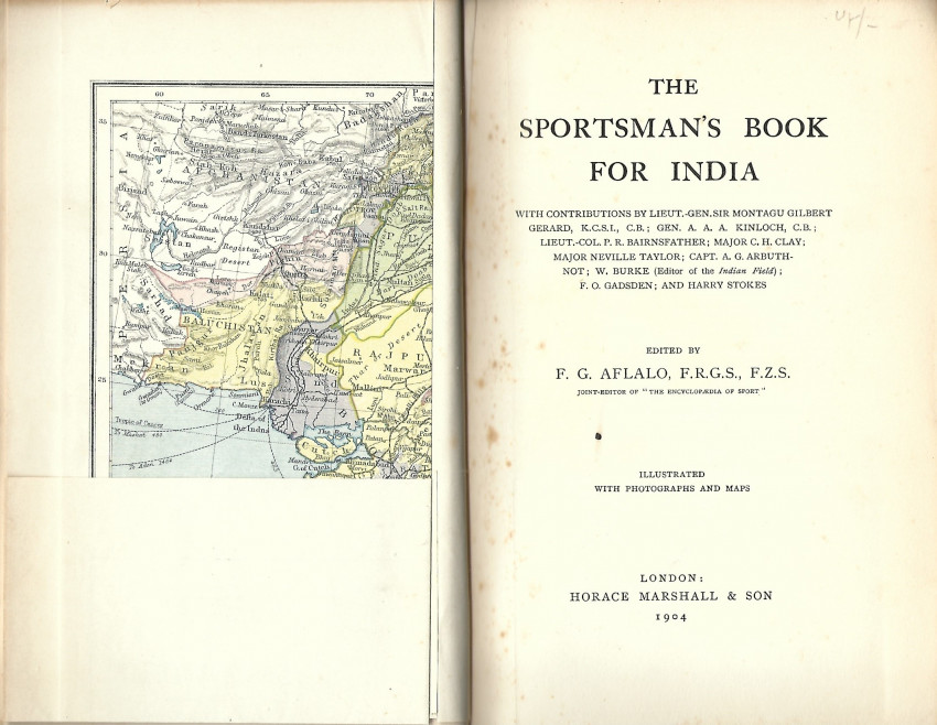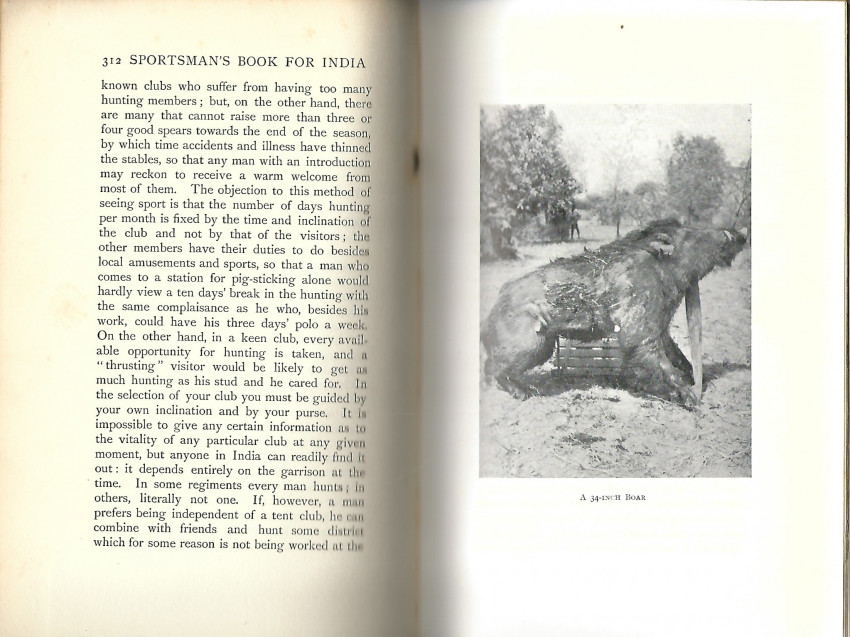 Hefty guide to the various sports that could be enjoyed in early 20th century India, written by a variety of army officers and dedicated to Lord Kitchener. With much on hunting for tiger, panther, rhino, bison, deer, antelope cheetah and other smaller game. The fishing is primarily for mahseer. Contributions by noted hunters including Gerard, Kinloch, Bairnsfather, Taylor, Arbuthnot. Tiger, panther, bear, Indian rhino, bison (gaur), Kashmir shooting, Himalayan shooting, deer and antelope of the Indian plains all feature in the book.