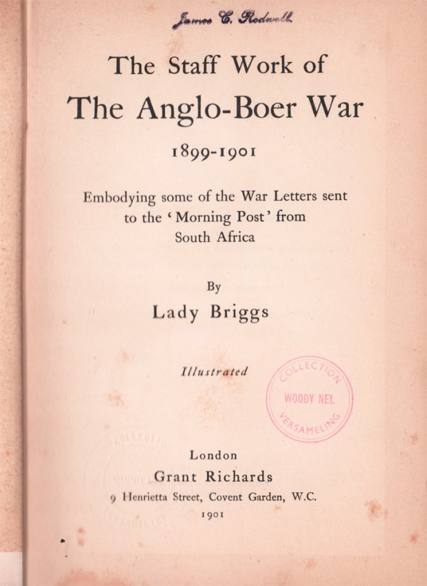 Mendelssohn (Sidney) South African Bibliography volume 1 page 184: An account of the "work of the non-combatant branches of the army" during the war, with notes on the hospitals, hospital ships, and trains.