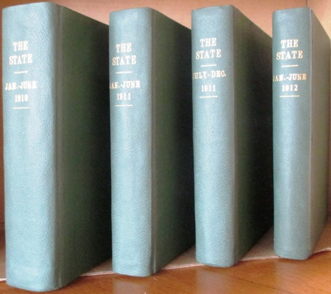 Each of the four volumes has 6 month's issues case into matching green rexine covered boards with gilt titling to the spine.