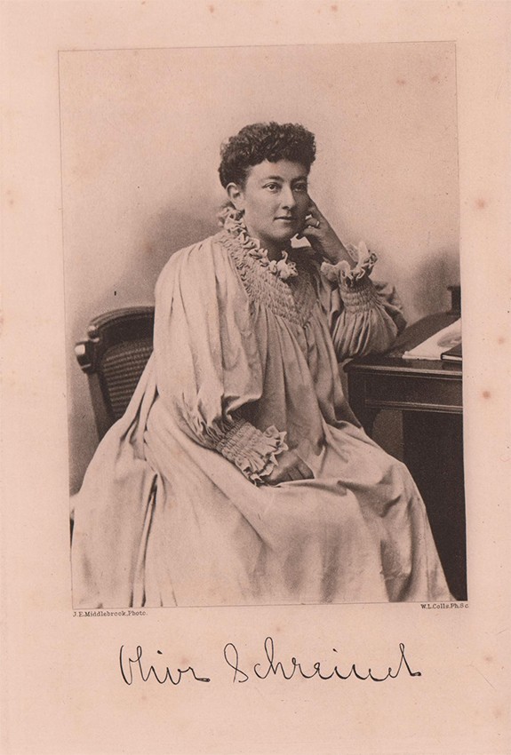 New edition:346 pages + 2 pages publisher's catalogue, frontispiece portrait of Olive Schreiner, original green cloth - titled gilt on the upper cover with decorative gilt and the title and Olive Schreiner's name on the spine, uncut edges, owners name dated 1897 on the half-title page, starting to wear at the hinges, a good copy.