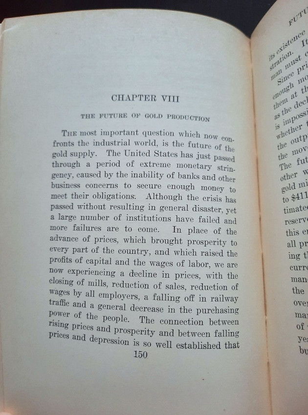 The connection between the gold supply and prosperity is now thoroughly understood. Without a supply of gold, increasing at a rate corresponding to the volume of business transactions, prices must decline, and the scale of business operations must be curtailed."
