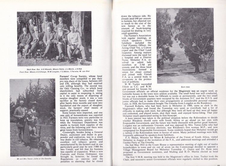 A detailed history of the Melsetter community from its start until 1971. Index and 10 blank pages at back of book.