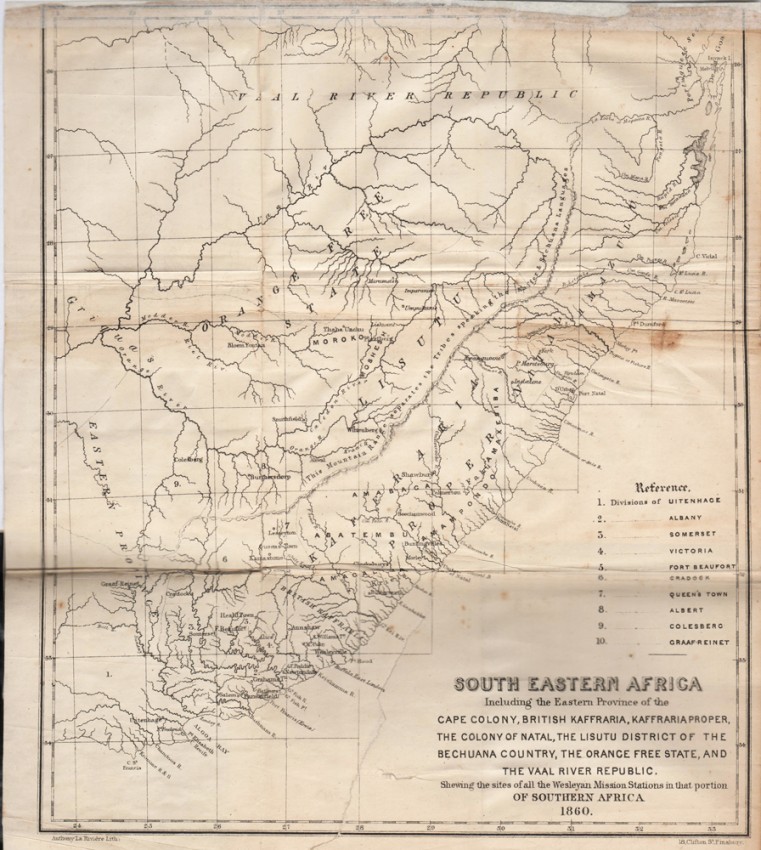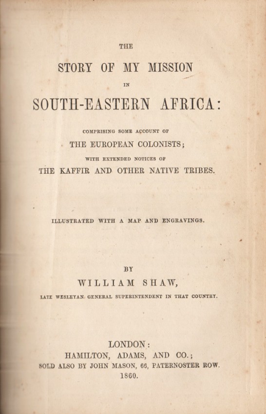 Mendelssohn (Sidney) South African Bibliography, volume 2, page 311, ' Early in February 1820 the author (aged twenty-one) and his wife and child embarked in the Aurora, being attached to “Sephton's Party” of the Albany settlers, and the volume contains an account of the early days of the Eastern province, and of the progress of the 1820 settlers, together with some particulars of their grievances and disasters, and some references to the misunderstandings which arose between the Wesleyan missionaries and Dr. Philip. Considerable information is afforded respecting Kaffraria and the border settlements, also an account of the Fingos, notes on the Bechuana country, Natal, the superstitions of the various native races, together with a comprehensive history of the progress of the missionary institutions of South-East Africa.