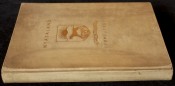 Parchment covered boards with embossed gilt design on front panel.