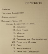 Includes sections on Discovery of Africa, Explorers, Slave Trade, Missions, Consuls, Transport and Communications, Police and Military, Press, Administration, Trade and Development.