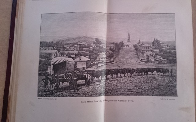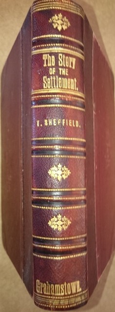 2nd Edition, Enlarged and Illustrated with Twenty-Two Engravings, 1894; T. and C. Sheffield, Printers and Publishers, High Street, Grahamstown. 12mo, 13 x 18cm; [8] 272pp [1] lxxix. Half burgundy leather with burgundy patterned cloth boards; 5 raised double bands to spine with gilt borders, gilt motif and gilt titles. Illustrated with frontispiece engraving of the Town Hall and Jubilee Memorial Tower and a further 21 engravings after photographs by Aldham and Aldham of various artists work. Preface to 2nd Edition by T. Sheffield; Contents, Illustrations; Errata and Notes; Main text; Appendix A; Appendix B.