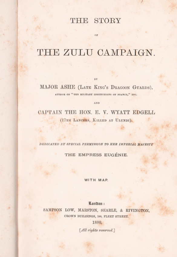 Professor John Laband in his introduction to the facsimile reprint edition published in 1989 (N & S Press): The Story of the Zulu Campaign by Major Ashe and Capt. the Hon. E.V. Wyatt-Edgell is the cavalryman's history of the Anglo-Zulu War. In informed detail, not to be found elsewhere, it describes the duties and activities of the irregular horse and cavalry during the Zulu campaign. The book also deals, from the professional soldier's viewpoint, with the more mundane but necessary activities of an army on campaign such as patrolling, bringing up supplies, and building forts and depots. This perspective more accurately reflects the daily concerns of the British in Zululand than those narratives which concentrate on the spectacular but infrequent set battle-pieces. This is what gives the book its special significance, and places it apart from other contemporary accounts of the campaign.'
