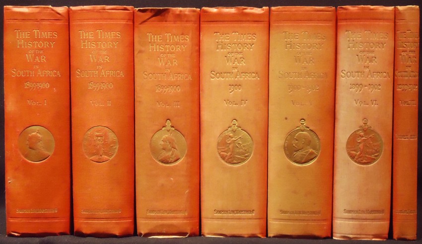 7 volumes: colour folding map in pocket at the front of volume 1, 5 other folding maps in pockets, 70 maps - mostly folding, many photogravure and other portraits, original red cloth, unevenly faded spines, titled gilt on the backs and decorated with medallions, top edges gilt, foxing on preliminary and end pages as well as fore-edges, a good set.