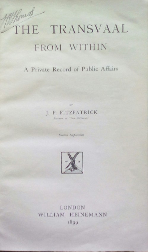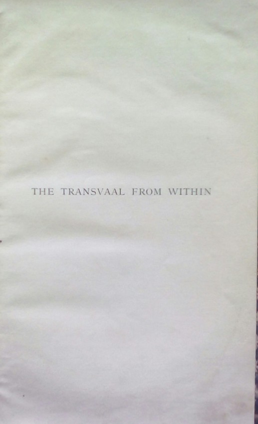From the author's preface: " . . . Everybody else had been heard and judged, the Uitlander had only been judged." [He was writing about the Jameson Raid.] "It therefore seemed proper that someone should attempt to present the case for the Uitlander. The writer, as a South African by birth, as a resident in the Transvaal since 1884, and lastly as Secretary of the Reform Committee, felt impelled to do this, but suffered under the disability of President Kruger's three years' ban [of banishment] . . . "
