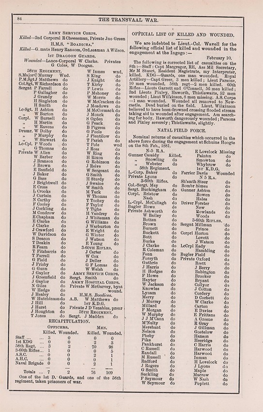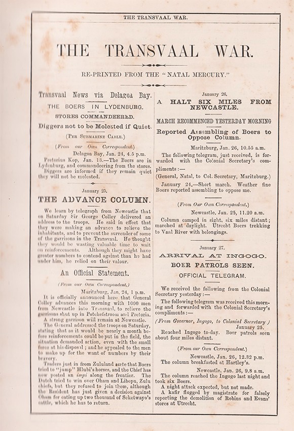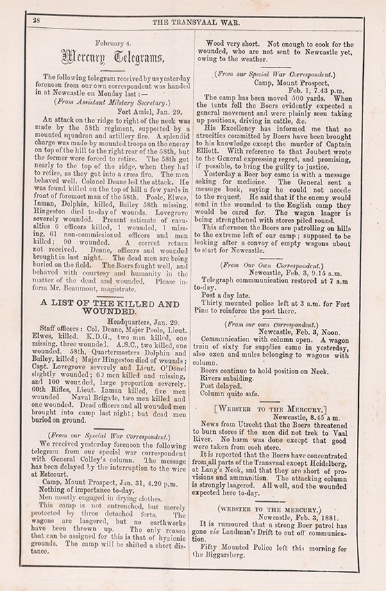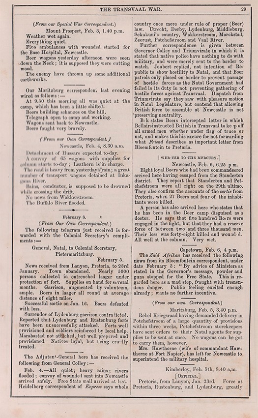 Double columns. Reprint of news items, leaders articles etc on the course of the war which appeared in the newspaper between 24 Jan and 4 June 1881.