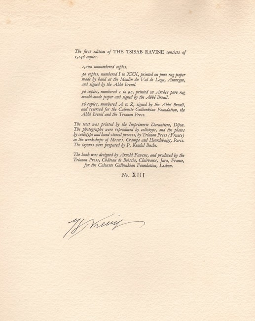 Signed by Abbé Breuil on the colophon page.
