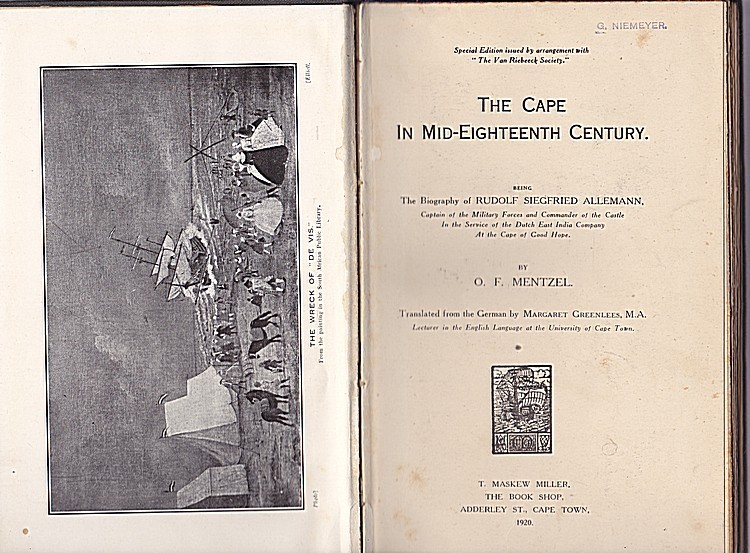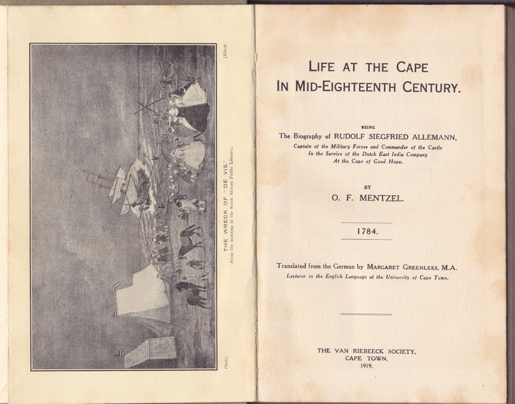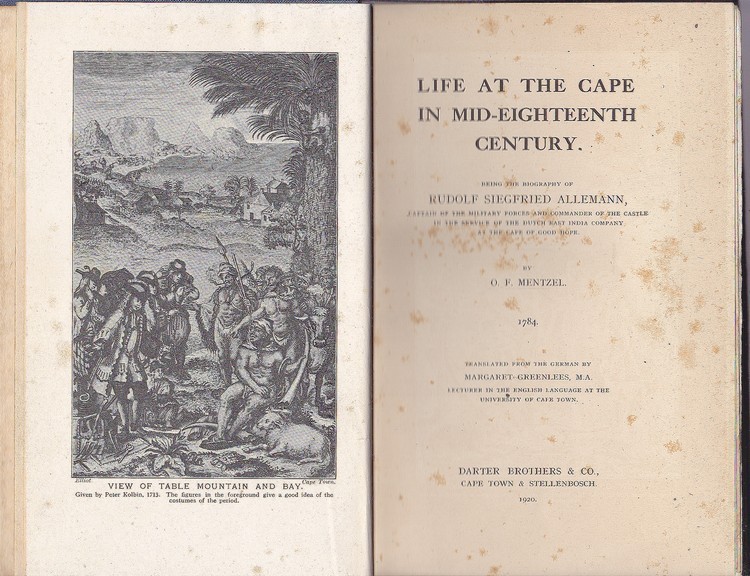 There are three variants of Volume 2, Life at the Cape in the Mid-Eighteenth Century, being the biography of Rudolf Siegfried Allemann, by O.F. Mentzel, originally published in 1784,