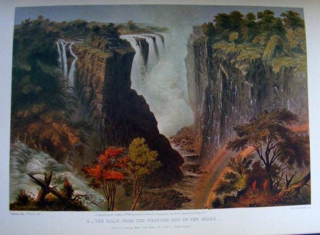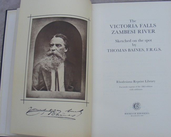 Thomas Baines who reached the Victoria Falls in 1862 in company with James Chapman was the first artist to look upon and paint this great river wander.His folio of 10 chromolithographs,with illustrated title page and descriptive notes appeared in London in 1866,the first-ever book of wholly Rhodesian content to be published.(from the introduction).