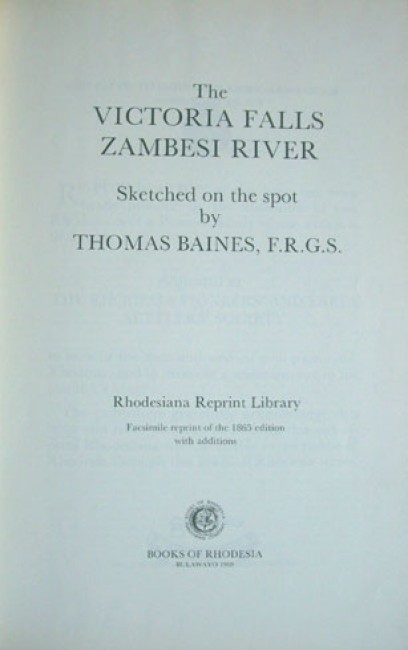 This is a facsimile reprint of the 1865 edition with additions. Frontis portrait of Thomas Baines, title page, 2 pages of the publisher\'s introduction, followed by the facsimile of the original coloured title page, text to page 8, followed by the 10 coloured plated (11 in total - including title page). Each plate has a tissue guard.